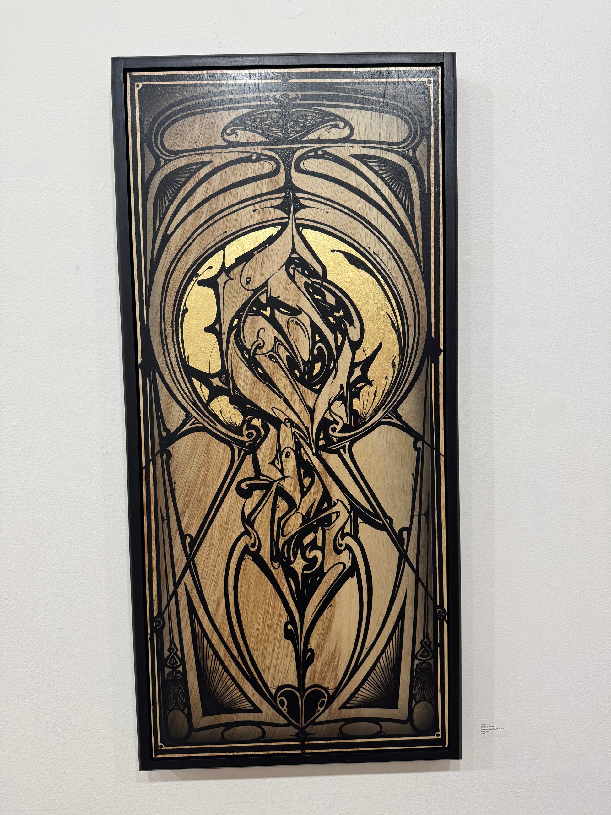 Aerosol, acrylic, gold leaf on wood